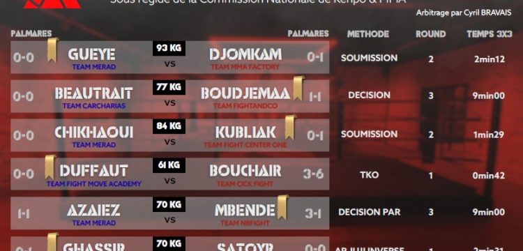 | 3e Championnat de France de MMA (Genève-Suisse) | 1 & 2 Juin. |